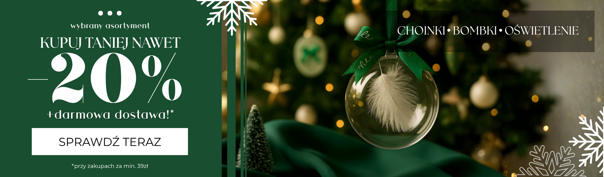 W te święta Twoja choinka i przydomowa przestrzeń mogą wyglądać zjawiskowo. Wystarczy, że obejrzysz nasze choinki sztuczne, bombki i inne ozdoby świąteczne, a następnie dokonasz zakupu. Bogata oferta SportService zawiera setki dekoracji świątecznych o różnych kształtach, wzorach i kolorach. Zjawiskowe choinki tradycyjne i na pniu, nietłukące się bombki choinkowe, energooszczędne oświetlenie świąteczne – wybór jest naprawdę ogromny!