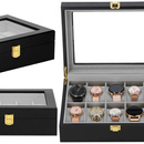 Szkatułka na zegarki 26,5x20x8 cm czarno-szary organizer z 10 przegródkami