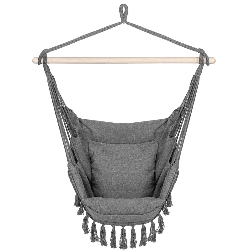 Hamak brazylijski z poduszkami fotel wiszący krzesło boho szare