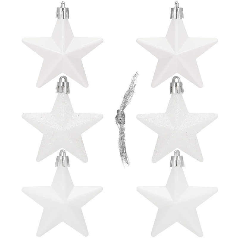 ( ilość produktów: 3944 )Bombki choinkowe 6 szt. gwiazdki ozdoby świąteczne zestaw białe