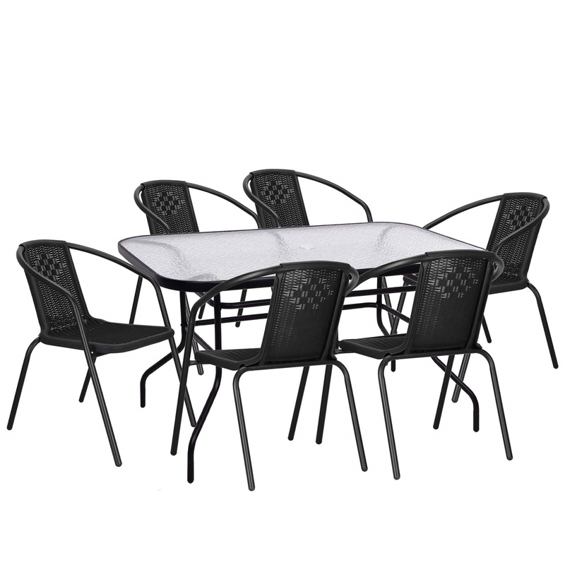 ( ilość produktów: 3944 )Meble ogrodowe metalowe zestaw stół 120x70 cm i 6 krzeseł na taras balkon czarne