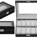 Szkatułka na zegarki 25x20x8 cm czarno-szary, ekoskóra organizer z przegródkami i okienkiem