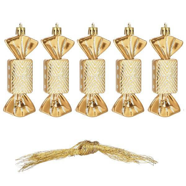 Bombki choinkowe 5 szt. ozdoby świąteczne zestaw cukierki 9 cm złoty