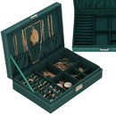 Szkatułka na biżuterię 28x19,5x7 cm zielony, welurowy organizer z 17 przegródkami