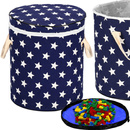 Kosz do przechowywania zabawek i ubrań pojemnik z uszami granatowy w białe gwiazdki