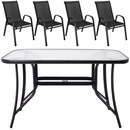 Meble ogrodowe zestaw krzesła, stół ze szkłem hartowanym dla 4 osób czarny
