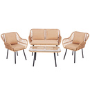 Meble ogrodowe zestaw technorattan sofa, fotele i stolik ze szkłem hartowanym beżowe