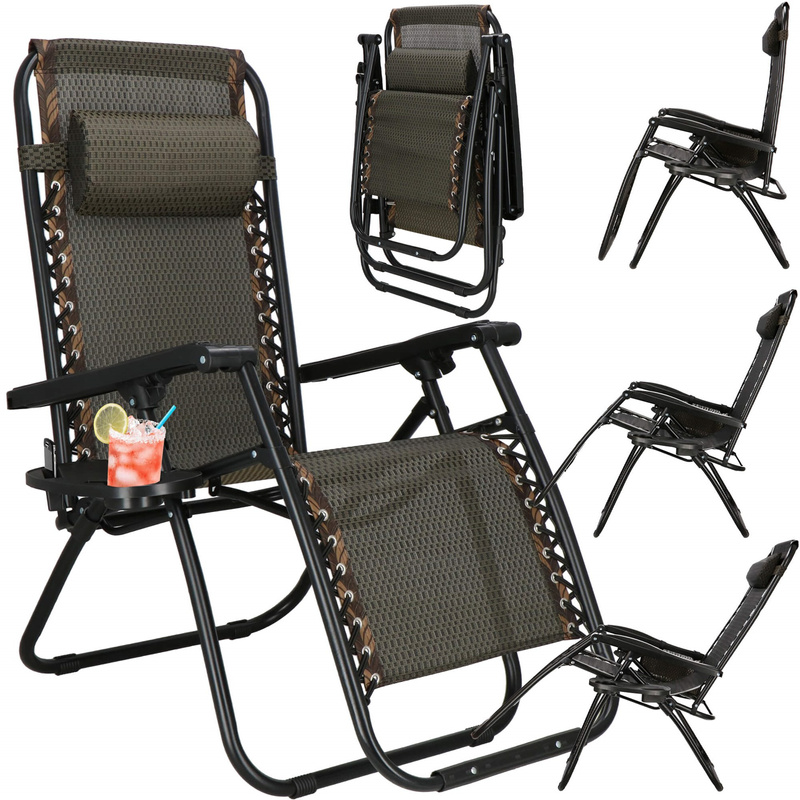 Leżak ogrodowy zero gravity z zagłówkiem brązowy