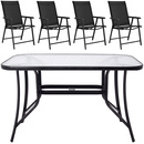 Meble ogrodowe 4 krzesła, stół ze szkłem hartowanym zestaw na taras czarny