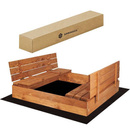 Piaskownica drewniana 120x120 cm zamykana z podłożem, brązowa