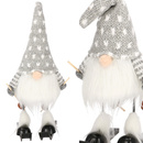 ( ilość produktów: 388 )Skrzat na nartach 34 cm ozdoba świąteczna, ruchomy krasnal świąteczny, gnom szary