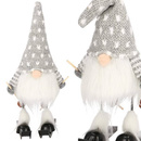 Skrzat na nartach 34 cm ozdoba świąteczna, ruchomy krasnal świąteczny, gnom szary