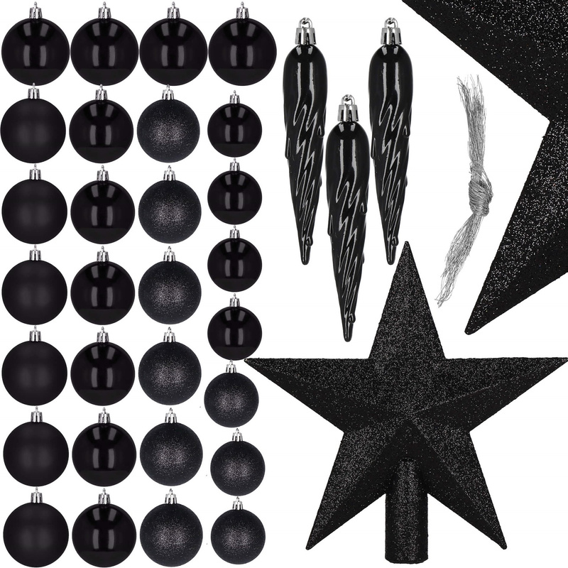 Bombki choinkowe 33 szt. ozdoby świąteczne zestaw z gwiazdą czarne