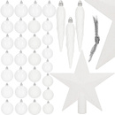 Bombki choinkowe 33 szt. ozdoby świąteczne zestaw z gwiazdą białe