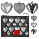 Bombki choinkowe 16 szt. zestaw dekoracji świątecznych, nietłukące, serca, srebrne