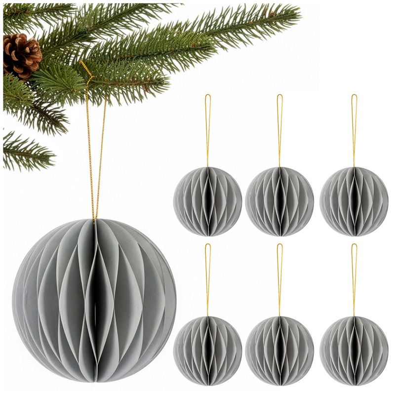 Papierowe bombki 6 szt. zawieszki choinkowe, ozdoby świąteczne 8 cm rozkładane, szary