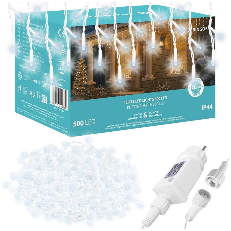 Kurtyna świetlna 1000 led girlanda, lampki wewnętrzno-zewnętrzne 45 m sople multikolor