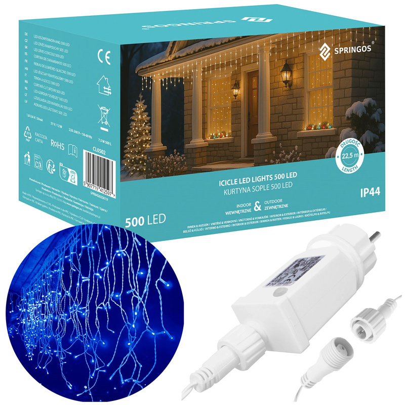 Kurtyna świetlna 500 led girlanda, lampki wewnętrzno-zewnętrzne sople zimny biały