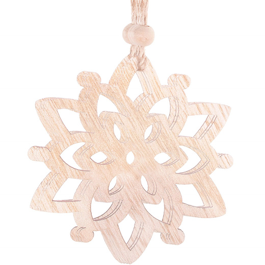 Ozdoba choinkowa 7cm drewniana, świąteczna zawieszka kwiaty zestaw 6 szt.
