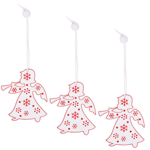Świąteczne zawieszki 6,5cm drewniane aniołki zestaw 3 szt. biały