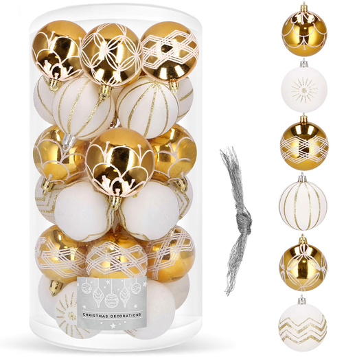 Bańki choinkowe 30 szt. bombki świąteczne zestaw biało0złoty