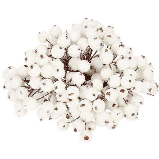 Sztuczna jarzębina ozdobna, oszroniona gałązka 100 szt. biała
