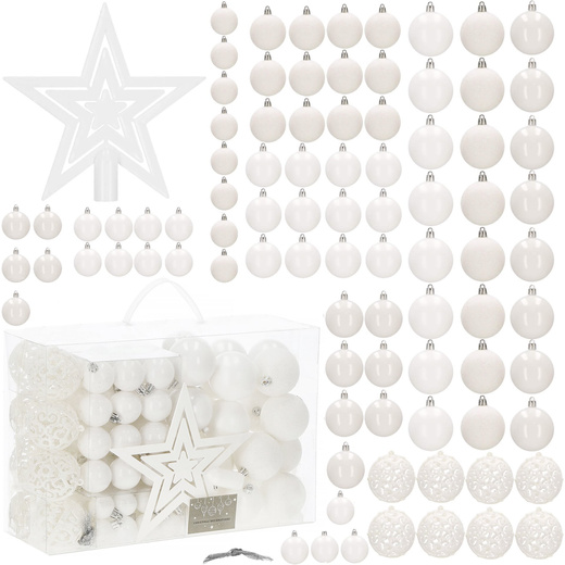 Bombki choinkowe 100 szt. biały zestaw choinkowy