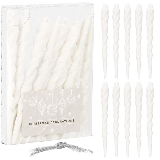 Zawieszka na choinkę sopel 10 szt. akrylowa, ozdoba świąteczna 12 cm biały