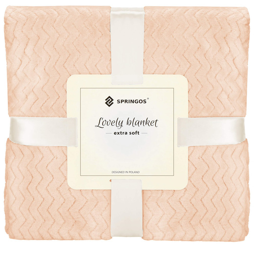 Narzuta na łóżko, pled 70x160cm tłoczony, dwustronny koc na kanapę brzoskwiniowy