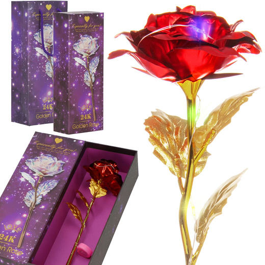Wieczna róża 25 cm świecąca ozdoba LED prezent kwiat czerwony