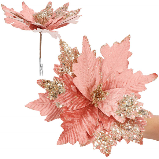 Gwiazda betlejemska, sztuczny kwiat na klipsie poinsecja różowa srebrne cekiny