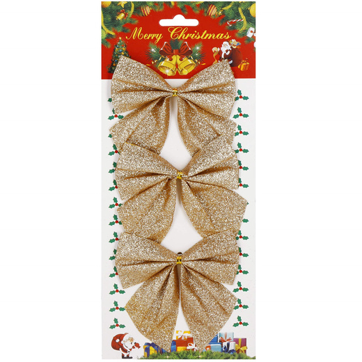 Kokardka świąteczna na choinkę 3 szt. brokatowa zawieszka choinkowa złota
