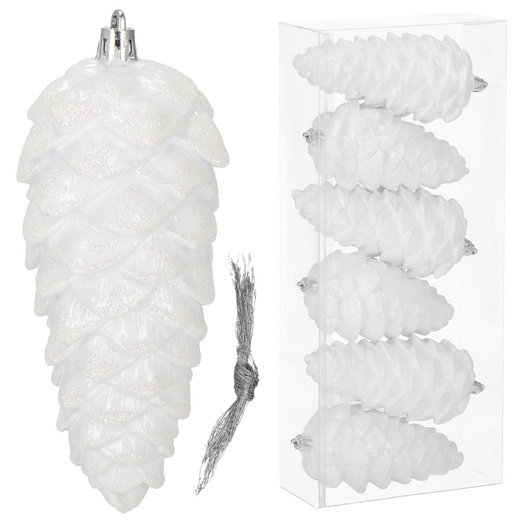 Zawieszki choinkowe szyszki 6 szt. ozdoby świąteczne 14 cm bombki biały brokat