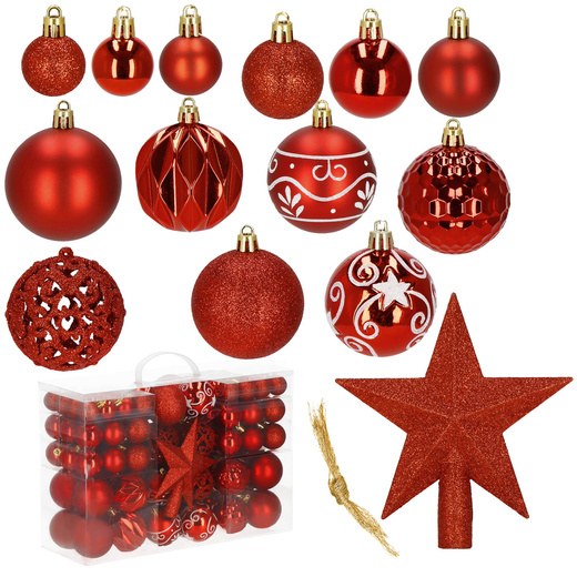 Bombki choinkowe 101 szt. ozdoby świąteczne zestaw z gwiazdą czerwone