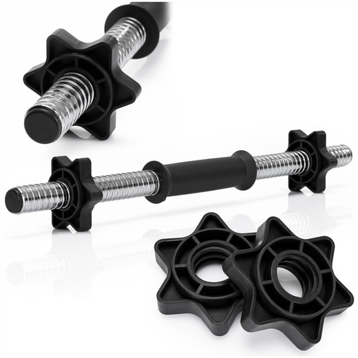 Gryf krótki 45 cm do hantli z zaciskami śr. 25 mm gwintowany, stal chromowana